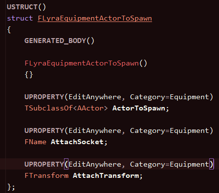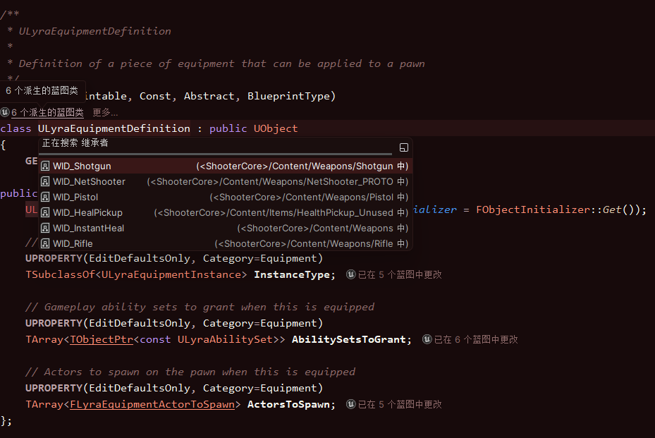 Lyra的武器全部继承自ULyraEquipmentDefinition : UObject这个类