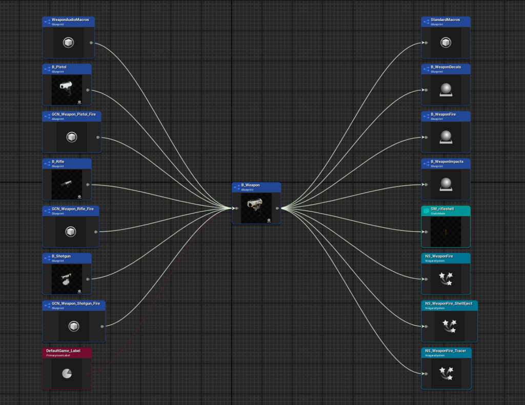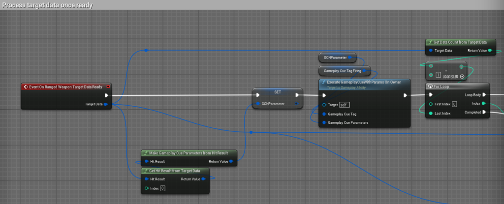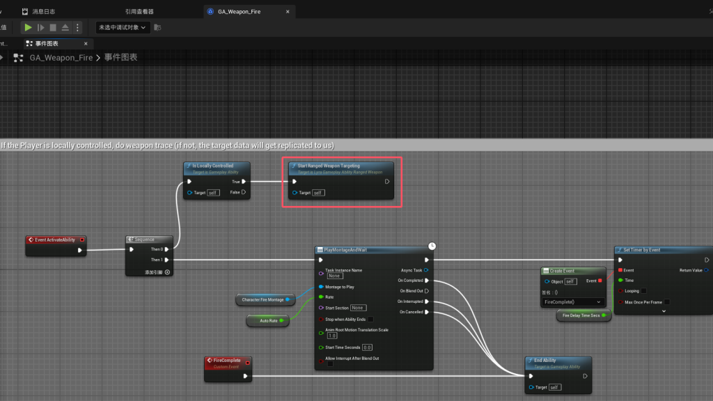 这个武器蓝图主要是一些武器表现特效等等,逻辑大多直接写在蓝图里面。