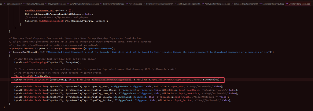 在HeroComp中绑定了增强输入,回调会处理相对应的GA