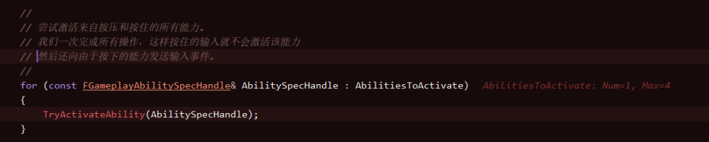 Tick中PlayerController发动AbilityComponent去处理关于GA的输入事件